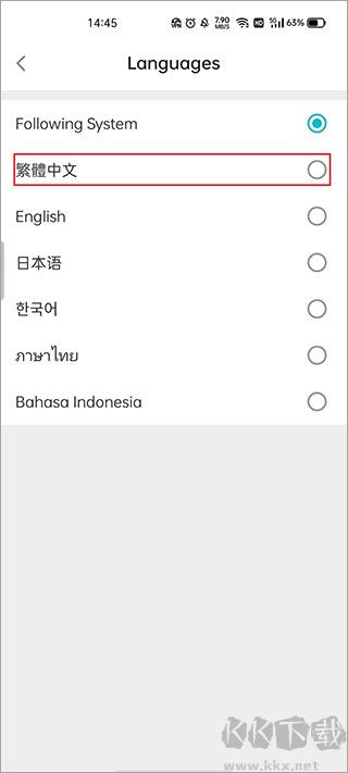 4、選擇“繁體中文”;支持繁體中文、韓語、日語、英語等多個國家的語言;