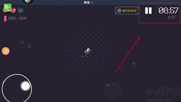 5、游戲界面左上方為游戲時(shí)間,在倒計(jì)時(shí)20分鐘內(nèi)玩家角色沒有死亡,即為勝利。