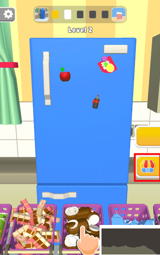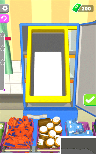 5、請將所有物品進(jìn)行整齊排列,之后點(diǎn)擊對勾,把冰箱柜歸位。