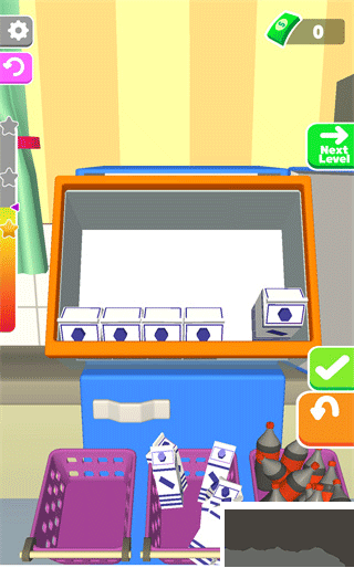 4、若物品排列未完成,可點(diǎn)擊返回箭頭,之后點(diǎn)擊取出物品,再點(diǎn)擊購物籃以重新進(jìn)行排列 ;