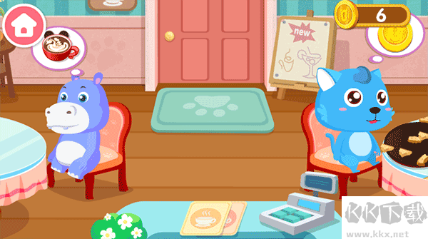 奇妙咖啡餐廳手機(jī)版是一款專為4到5歲的孩子打造的經(jīng)營(yíng)餐廳的益智游戲,這游戲可簡(jiǎn)單了,孩子在里面當(dāng)餐廳老板,小動(dòng)物來(lái)吃飯,得先讓它們坐好,再問(wèn)想吃啥,然后做出來(lái),游戲畫(huà)面都是卡通的,顏色好看,小孩就喜歡這樣的,而且玩一會(huì)兒,游戲就會(huì)讓孩子歇一歇,家長(zhǎng)不用怕孩子玩得太入迷,感興趣的小伙伴就快來(lái)kk網(wǎng)站下載體驗(yàn)一下吧。