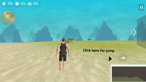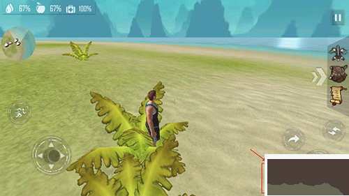 2、成功登島后,通過(guò)點(diǎn)擊屏幕左右兩側(cè)操控男子移動(dòng)。當(dāng)務(wù)之急是補(bǔ)充體力,參照地圖標(biāo)識(shí)的食物分布,前往荒島尋覓椰野果。