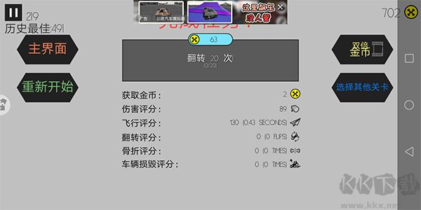 1、選擇車禍現(xiàn)場(chǎng):進(jìn)入游戲后,在關(guān)卡選擇界面中,用金幣解鎖車禍現(xiàn)場(chǎng)。金幣越多,可解鎖的場(chǎng)景越復(fù)雜。