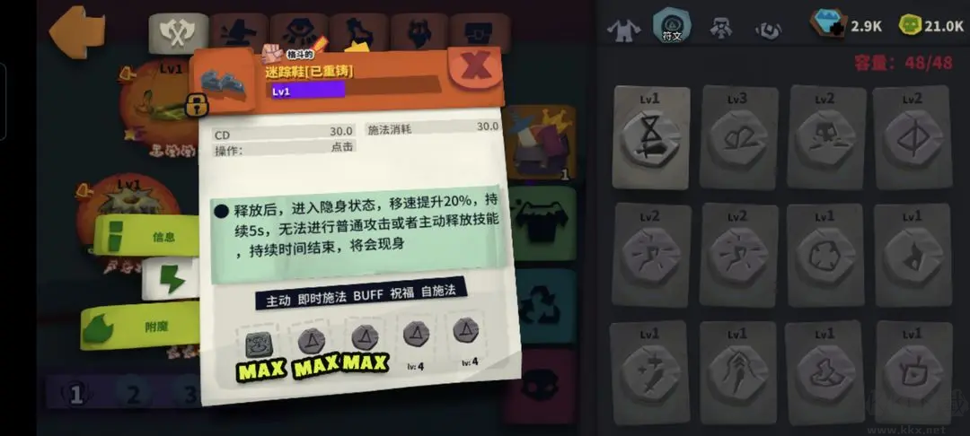 如果在前期獲得迷蹤鞋,可以插幾個(gè)buff延長(zhǎng)符文,用來(lái)增加持續(xù)時(shí)間,在打boss的時(shí)候用一下,boss丟失攻擊目標(biāo)就會(huì)罰站,就可以打樁了。后期追獵基本必備。