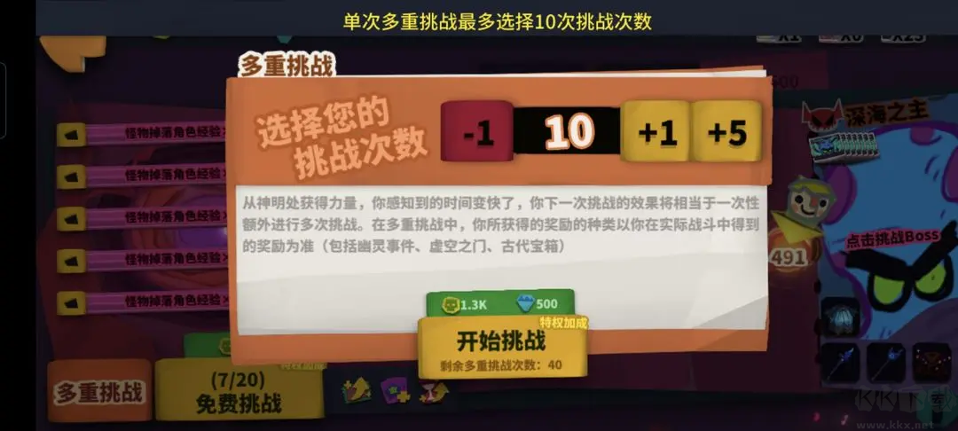 顧名思義,就是挑戰(zhàn)一次可以獲得多倍收益,最高十倍,配合五條經(jīng)驗(yàn)祝福,打一次就可以獲得十倍的經(jīng)驗(yàn)獎(jiǎng)勵(lì)。