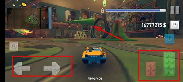 3、啟動游戲。位于左側(cè)的左右箭頭用于控制方向;右側(cè)的紅色踏板為倒退油門,綠色踏板為前進(jìn)油門。您需要依照屏幕中上方的綠色箭頭指示來完成任務(wù)。