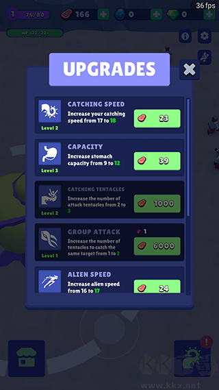 4、當(dāng)食物足夠后,可以用來升級自己的能力。