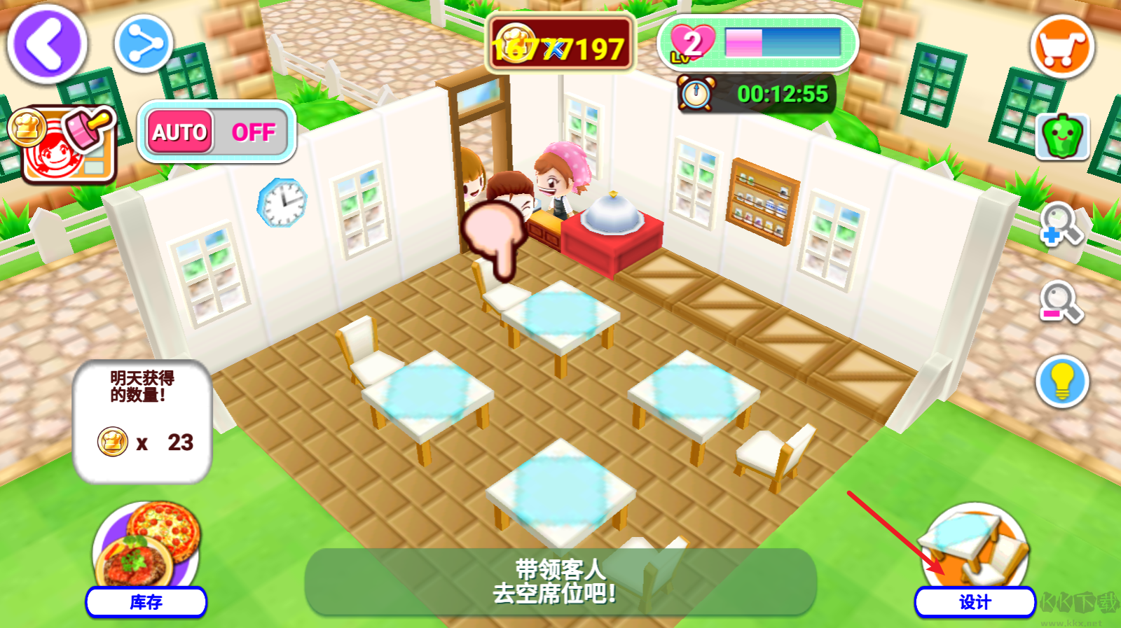 1、在餐廳中點擊右下角的設(shè)計。