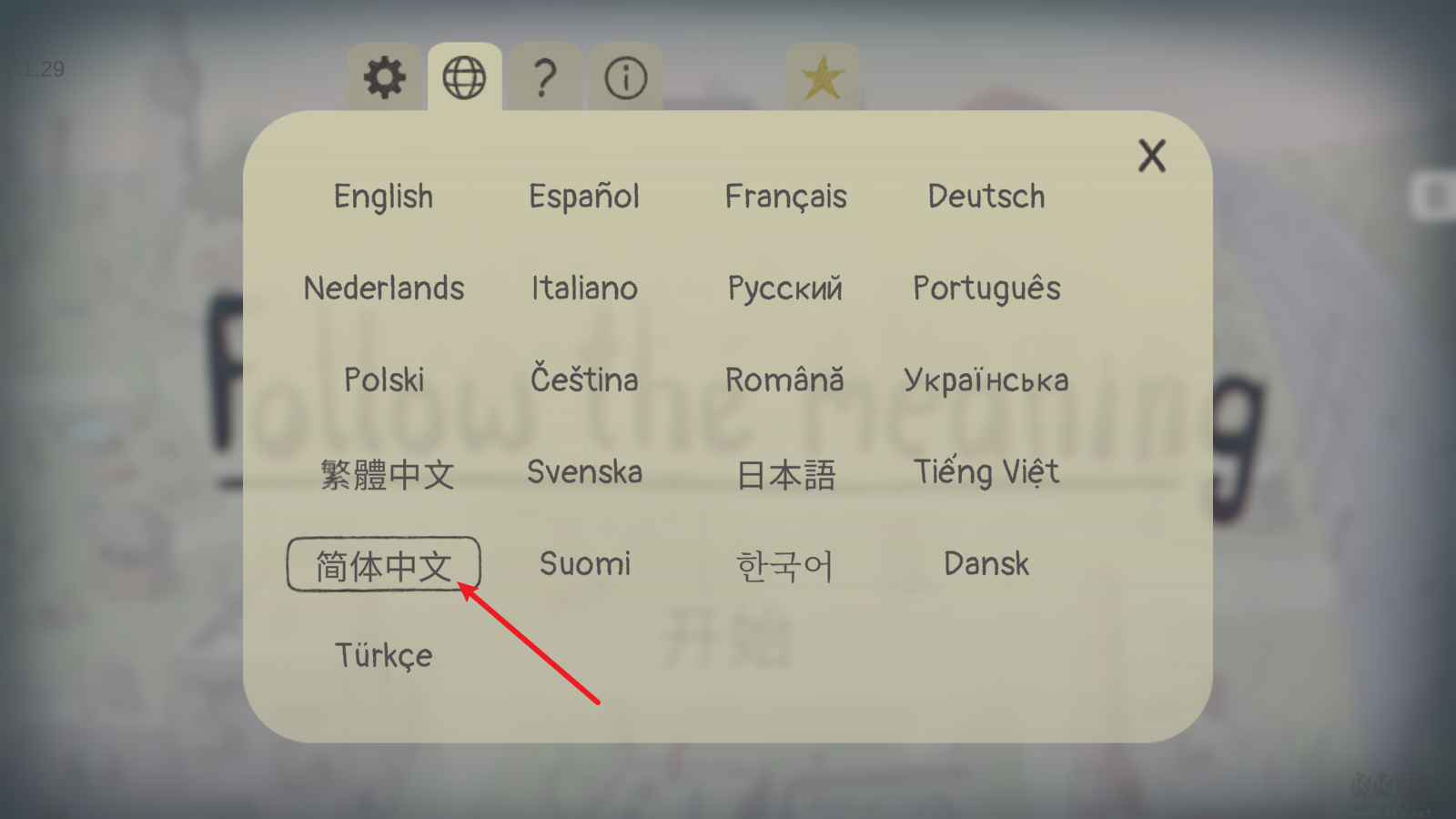 3、隨后在這里面找到簡(jiǎn)體中文,點(diǎn)擊即可切換。