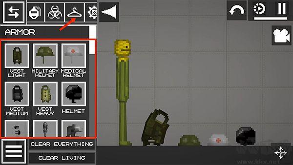 10、選擇【衣架】圖標(biāo),包括防彈衣、安全帽、頭盔等不同類型的防具,