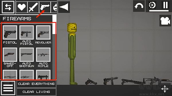7、選擇【手槍】圖標(biāo),可選用手槍、散彈槍、步槍、沖鋒槍等不同類型的槍支,