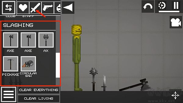 6、選擇【寶劍】圖標(biāo),有寶劍、錘子、斧頭等冷兵器可供選擇使用,