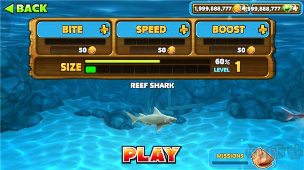 3、多樣鯊魚(yú)等待解鎖:有 11 種類(lèi)型的鯊魚(yú)可解鎖,體驗(yàn)不同鯊魚(yú)的獨(dú)特之處。