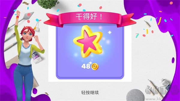 3、完成顏色填充后,將獲得相應(yīng)獎(jiǎng)勵(lì)。可運(yùn)用所獲獎(jiǎng)勵(lì)對(duì)自己的房屋進(jìn)行裝飾;