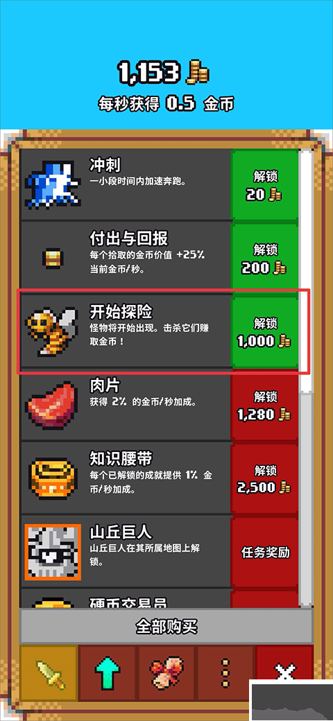 4、當(dāng)所收集的金幣達(dá)到 1000 時(shí),便可解鎖探險(xiǎn)任務(wù)。