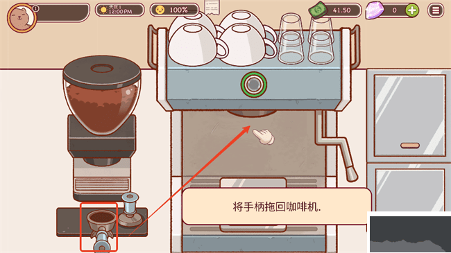 6、將手柄拖回咖啡機(jī);