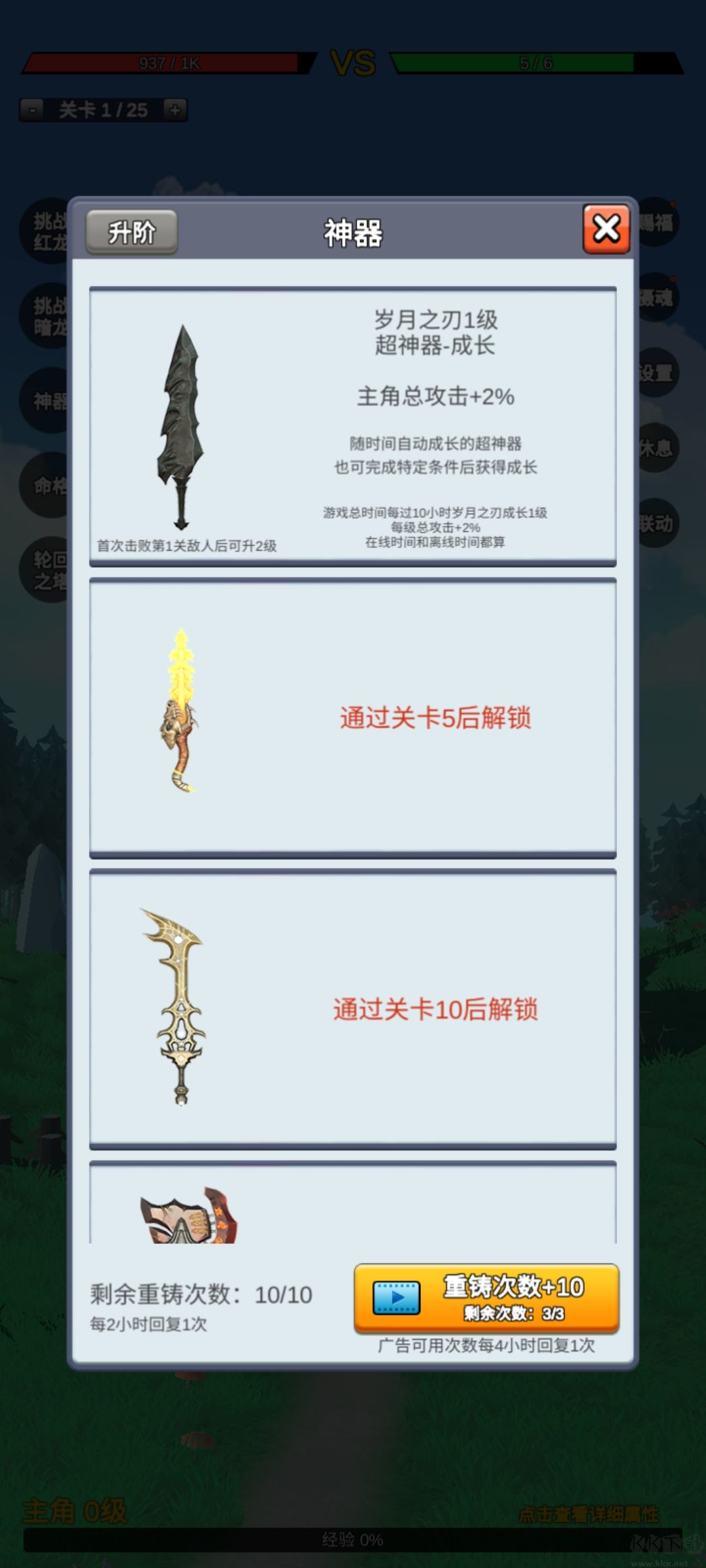 5、角色等級越高,所能獲取的神器數(shù)量越多。