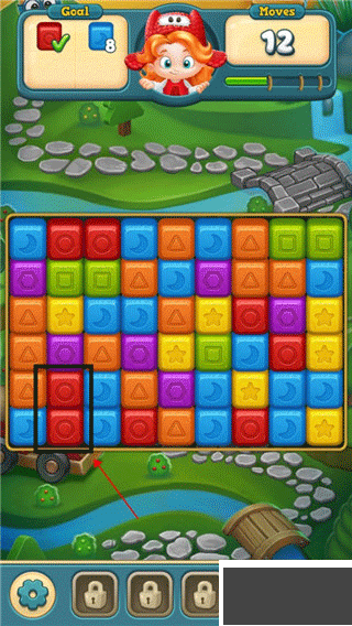 3、達到指定的目標后,剩下的步數(shù)就可以隨機當做獎勵消除一部分道具,增加得分