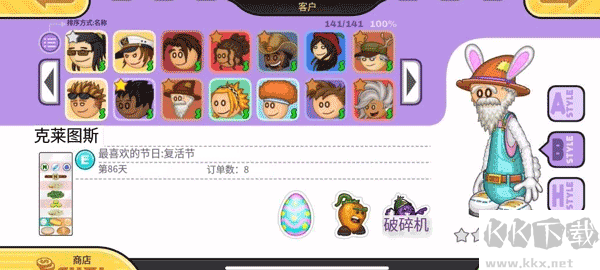 1、克萊圖斯:其最喜愛的節(jié)日為復(fù)活節(jié),于第 86 天現(xiàn)身,訂單數(shù)量為 8 單。