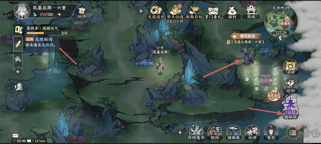金丹繼續(xù)主線走,清野怪,爬塔,解鎖副本“南天別院”和“東海之淵”,兩個(gè)副本個(gè)人推薦刷東海之淵,(此刻會(huì)被“南天別院”副本沒(méi)有大佬帶很難打過(guò))