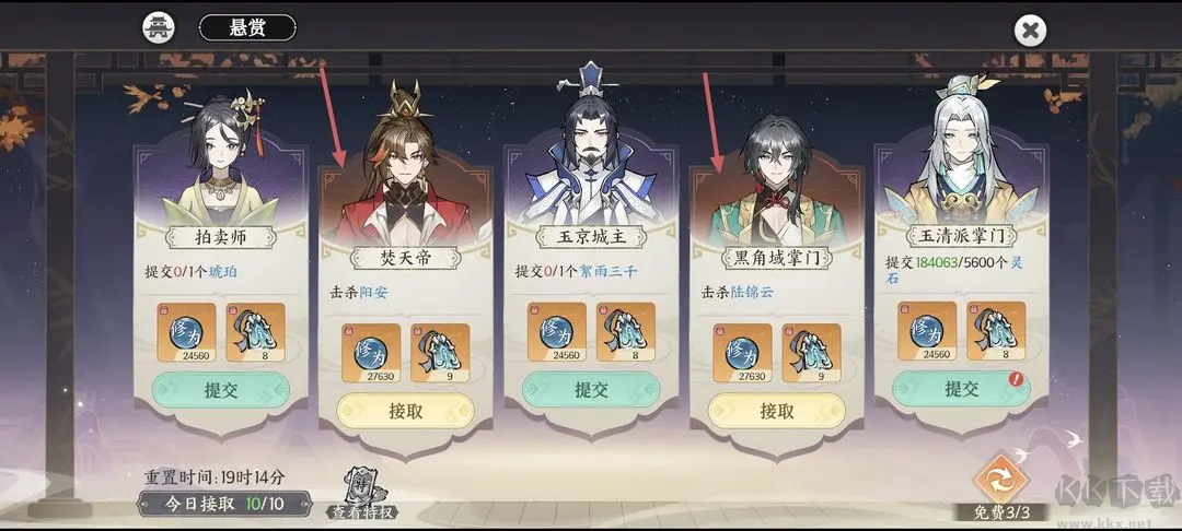 5、之前提到的懸賞勢(shì)力任務(wù):懸賞任務(wù)刷新最高級(jí)是深紅色背景區(qū)做(平民千機(jī)令9或10個(gè)都是)
