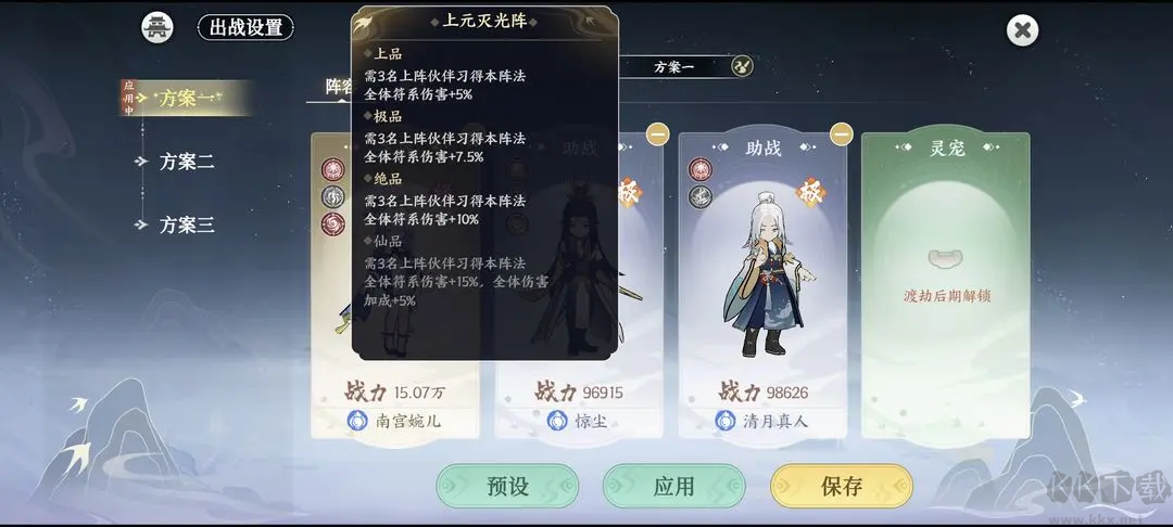 目前版本伙伴強(qiáng)度:T0婉兒,由于上陣的三個(gè)伙伴存在羈絆關(guān)系,可以組成三符陣容:南宮婉兒、驚塵、青月道人(此羈絆婉兒傷害最大化主婉兒副驚塵)