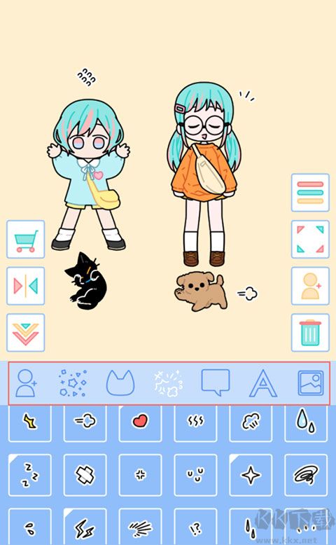 4、故事創(chuàng)作功能:利用多種服飾道具、帥氣效果、對話框、文字,編寫?yīng)毺毓适?。