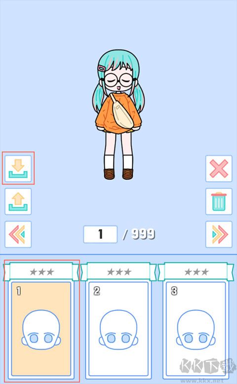4、進(jìn)入頁面后,首先點(diǎn)擊下方已搭配好的女性角色形象(“女鵝”),將其放置于屏幕上。若需添加多個角色至屏幕中,可再次點(diǎn)擊下方的女孩形象。長按角色即可對其進(jìn)行拖動操作,若要刪除角色,可將其下滑至垃圾桶按鈕處。若需返回主界面,僅需點(diǎn)擊右方第三個按鈕。