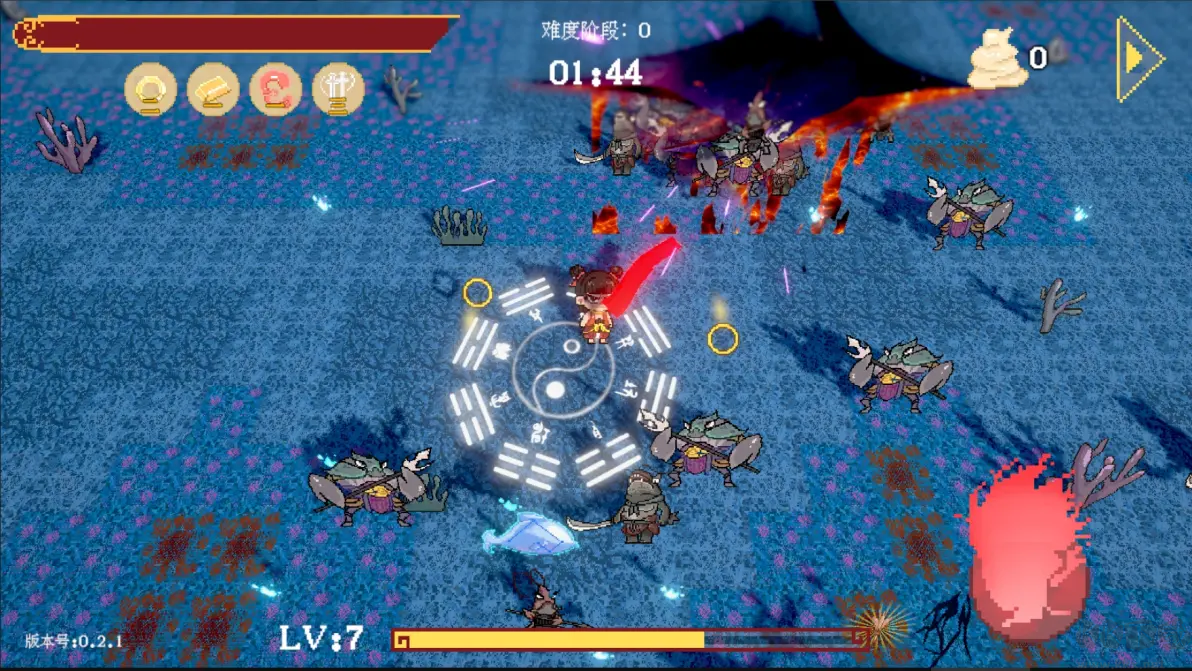 角色扮演像素肉鴿游戲《黑神榜:哪吒》是由B站UP主" 火山哥哥 個人開發(fā)用愛發(fā)電制作的,不盈利、不做任何商業(yè)化的民間同人游戲。游戲內(nèi)我們將使用哪吒的各類法寶消滅怪物不斷提升自己,挑戰(zhàn)多種強力BOSS,還可以利用天賦升級系統(tǒng)提升角色屬性!火山哥哥后續(xù)可能還會推出游戲的更多版本,解鎖更多地圖、BOSS、法寶等。