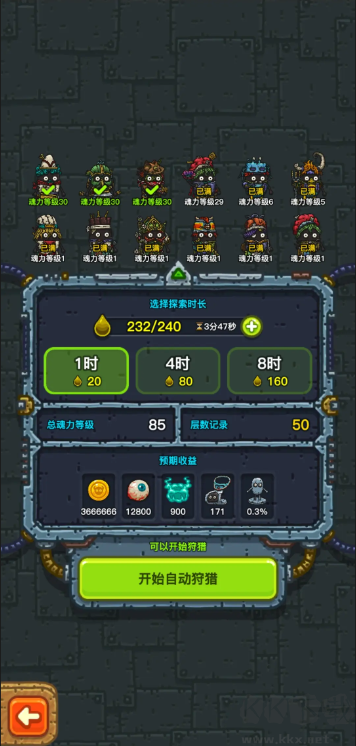 2.探險(xiǎn)每次需要的費(fèi)用會(huì)逐漸增加直到上限,剛開一張新的地圖,一直探險(xiǎn)新圖金幣可能比較吃緊,有幾個(gè)解決辦法,一個(gè)是制作一些比較值錢的菜,先不賣(在做菜的鍋?zhàn)筮呌幸粋€(gè)開關(guān),關(guān)上就不賣了),把菜屯起來(lái)等晚上再把菜拿去賣,這樣第二天登錄游戲就會(huì)提醒你離線的時(shí)候賺了多少金幣,可以用一張廣告卡翻倍。另一個(gè)辦法是先不探險(xiǎn),把金幣存起來(lái),等周末的時(shí)候再探險(xiǎn),因?yàn)橹苣┦?0%降價(jià),平常是20%。后期有狩獵賺錢快基本不會(huì)缺金幣。