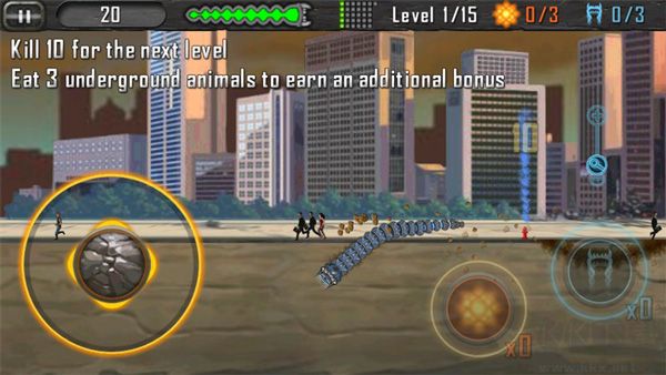 3、將扮演一只令人恐懼的地下食人蠕蟲。在此過程中,需要不斷鉆出地面,吞食地面上的人類與動物。