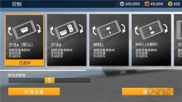 2、支持兩種控制賽車的方式,即重力感應與屏幕控制,且這兩種方式下又細分七種個性化操作模式。