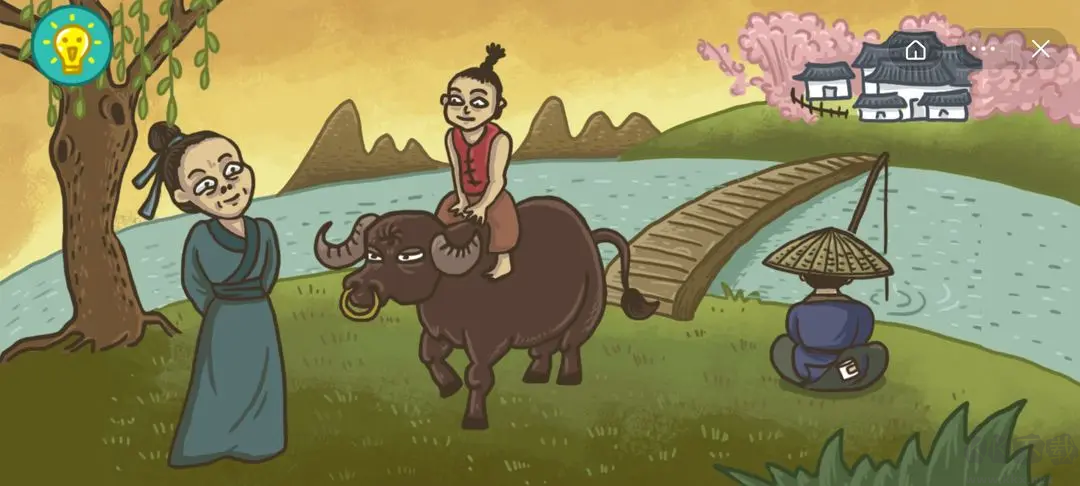 左下角地上的毛筆,左上角“玉春樓”點“玉”“春” 變“狀元樓”,風車糖葫蘆中間的書,中間的人,算命的卦,右上角的棺材,右下角的卷軸,右下角窗戶點一下,飛鳥點一下變成飛書,殺豬牌匾上的布 拽右下角。