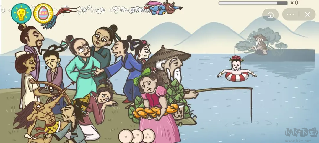 (彩蛋:姜太公身邊堆滿粽子之后,姜太公變成粽子,湖面上有賽龍舟的)
