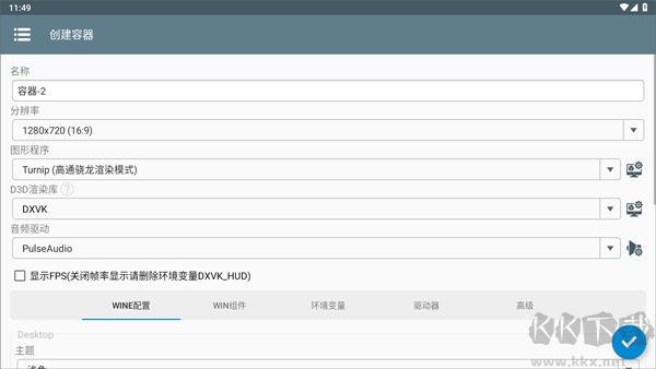 2、選擇屏幕分辨率,并設(shè)定顯存大小(若手機(jī)配置較低,建議將顯存和分辨率設(shè)置得較小)。