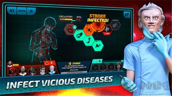 瘟疫模式:通過組合600余種真實(shí)病原體與風(fēng)險因子(如遺傳疾病、過敏原),逐步破壞人體八大生理系統(tǒng)(循環(huán)/神經(jīng)/呼吸等),最終導(dǎo)致目標(biāo)死亡。