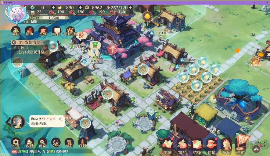 作為城主,玩家需要從零開始規(guī)劃城鎮(zhèn)布局:開墾農(nóng)田、建造作坊、研究科技樹……科技樹分為建筑、資源、生產(chǎn)、探索四大分支,解鎖內(nèi)容涵蓋裝飾建筑、農(nóng)作物到武器裝備。而十余種職業(yè)的居民(如神秘影衛(wèi)、煉丹道士)才是城鎮(zhèn)發(fā)展的核心——他們不僅外貌各異,更擁有專屬技能。通過培養(yǎng)居民等級、調(diào)整行為模式,甚至收集“靈器”提升戰(zhàn)斗力,玩家能真切感受到城鎮(zhèn)從荒蕪到繁華的蛻變。
