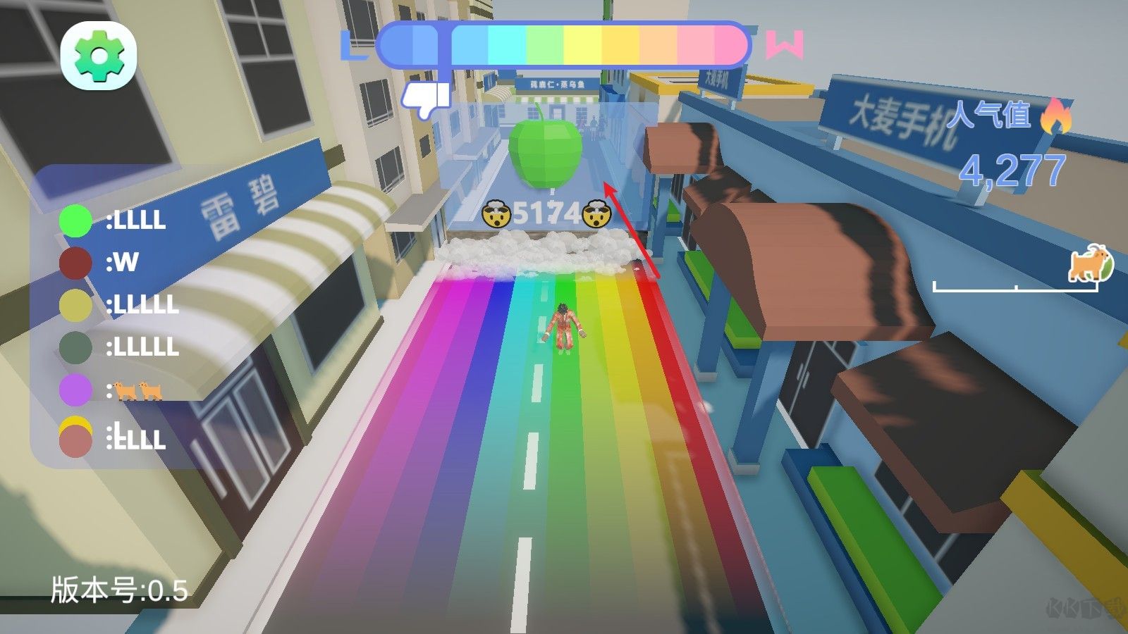 6、每隔一段區(qū)域就會出現(xiàn)這個綠蘋果,也是甲亢哥下播的暗語,在這時候就會進行后空翻,需要人氣值夠才能翻過去。