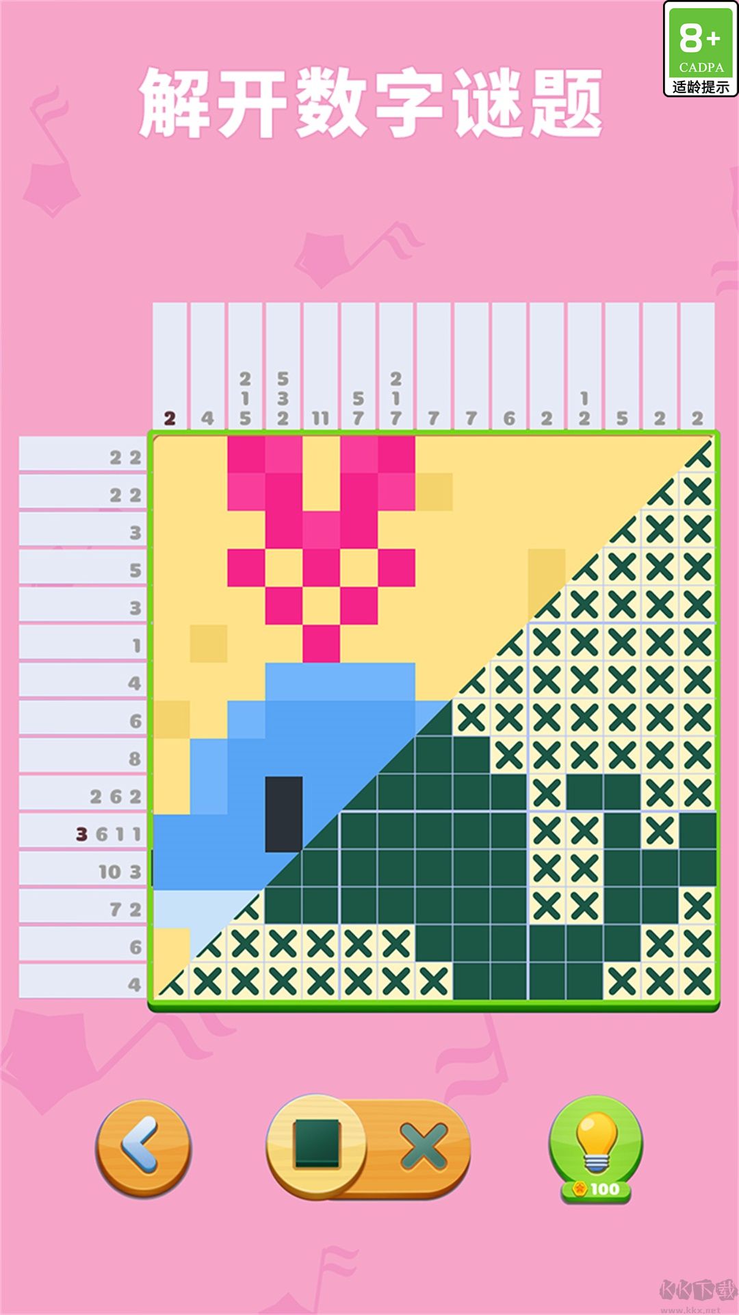 2、數(shù)字就是你的線索,它表示需要填充多少個連續(xù)的格子。