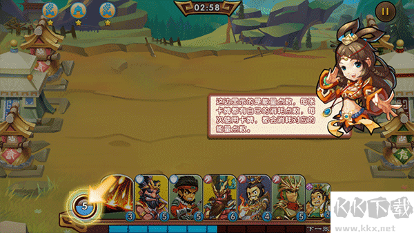6、此處顯示的是能量點數(shù),每張卡牌均有其自身的消耗點數(shù)。每次使用卡牌時,都會相應(yīng)消耗能量點數(shù)。