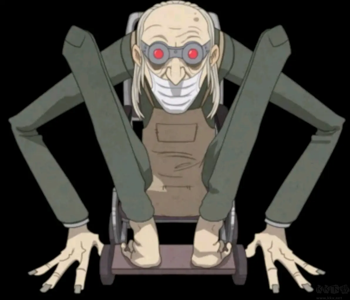 工匠看起來像一個老人,被綁在一個紫色的小輪椅上。他長著淺灰色的長發(fā),長著長的胳膊和腿,手指上長著黑色的長指甲。他的長腿似乎沒有用,他的腳指向下彎曲,也向后扭曲。他戴著白色的醫(yī)用口罩和紅色的護(hù)目鏡,穿著一件深灰色的綠色外套和棕色的圍裙。