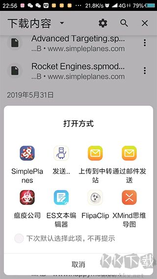 6、下載完成之后點擊打開,打開方式選擇簡單飛機。有些mod打開方式?jīng)]有簡單飛機的需要就將文件放入到files-mods文件夾中。