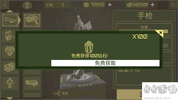 5、資源獲取升級:點擊鉆石旁加號獲取鉆石,再兌換金錢買裝備,助力機器人升級強化。