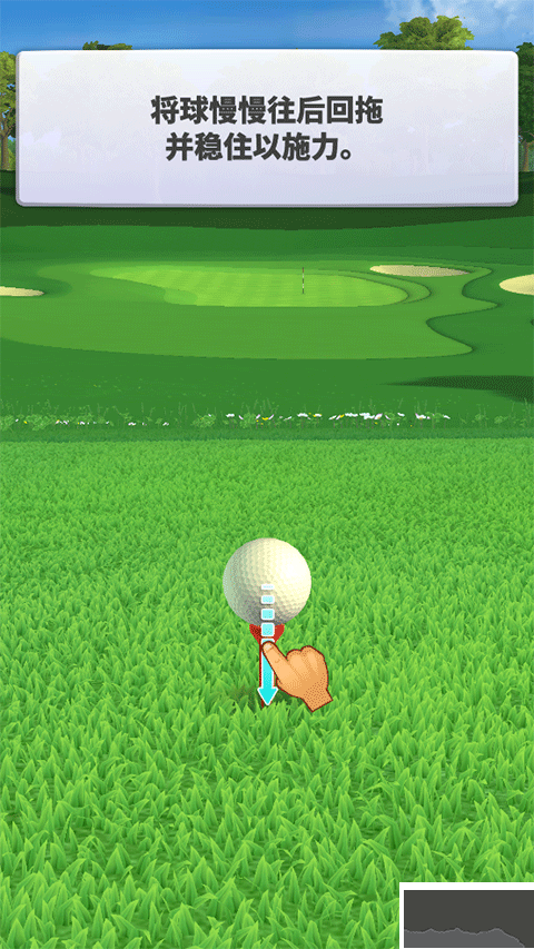 4、球近洞口,對(duì)準(zhǔn)拖球釋放;遠(yuǎn)則重復(fù)步驟,再次擊球。?