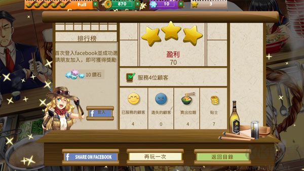 免費擴展餐廳,爭取三星評價,解鎖各國特色食譜關(guān)卡。