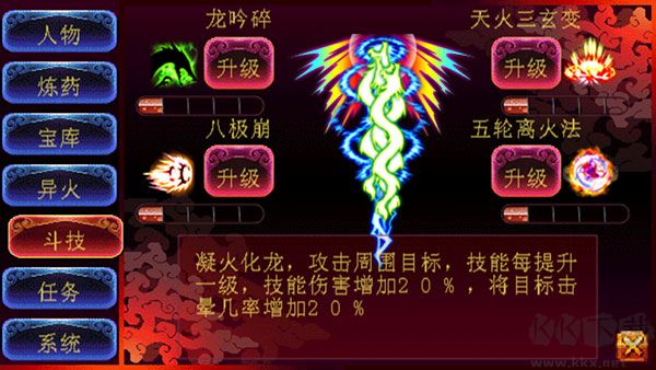 10、斗技可升級(jí)龍吟碎等功法,凝火成勢,提升戰(zhàn)斗輸出威力。?
