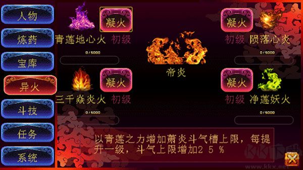 9、異火系統(tǒng)含青蓮地心火等四種,凝聚成火,增添戰(zhàn)斗制勝力量。?