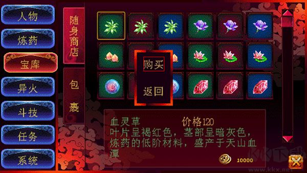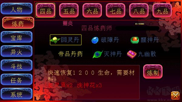 7、煉藥功能可煉制四品及以上藥品,助力戰(zhàn)斗與角色狀態(tài)恢復(fù)。?