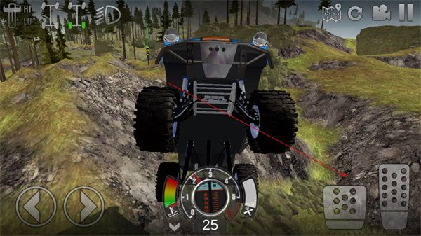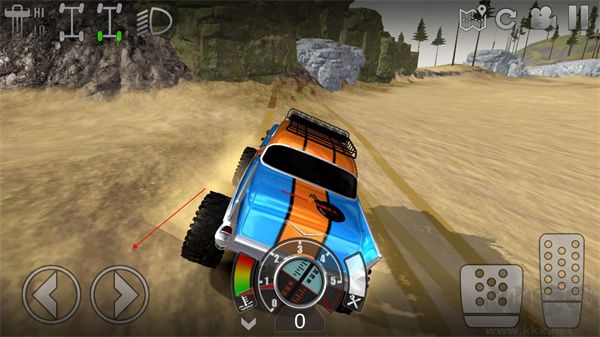 2、進(jìn)入游戲后,屏幕左側(cè)虛擬按鍵控制車輛方向,操作需根據(jù)地形實(shí)時(shí)調(diào)整。