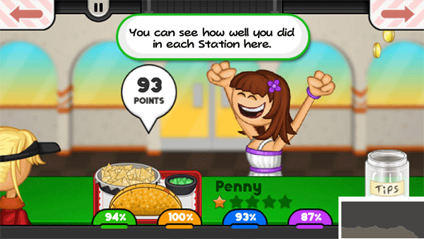 9、顧客用餐后給予評分,分數(shù)越高,獲得金幣獎勵越多。